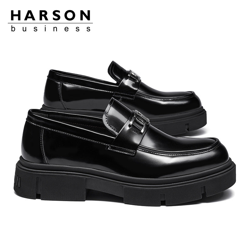 哈森男鞋秋季透气商务休闲皮鞋男士亮面一脚蹬懒人鞋增高豆豆鞋男