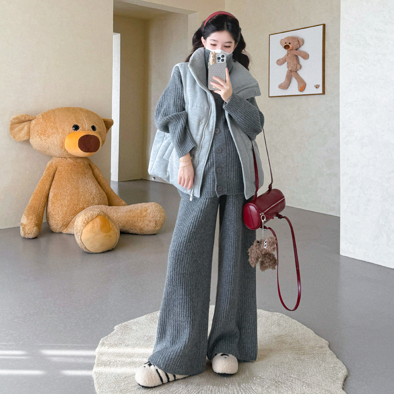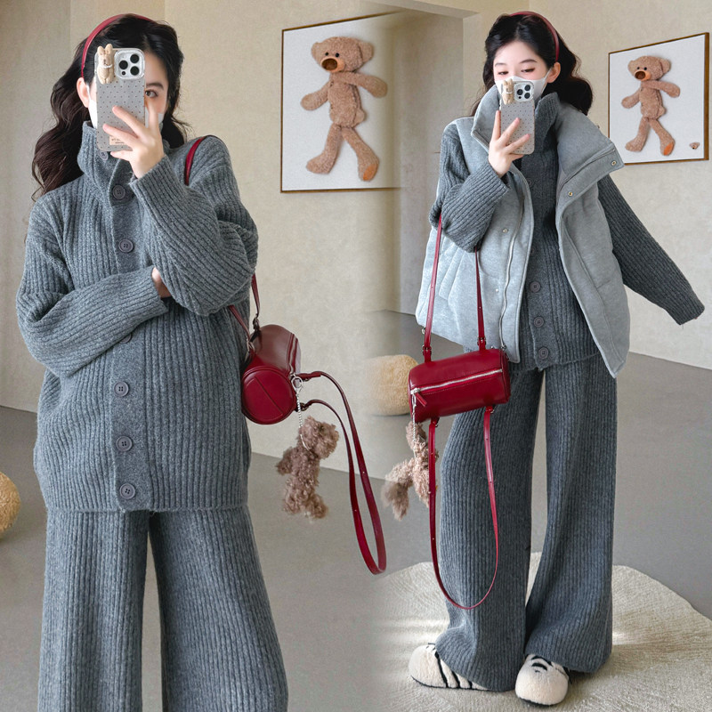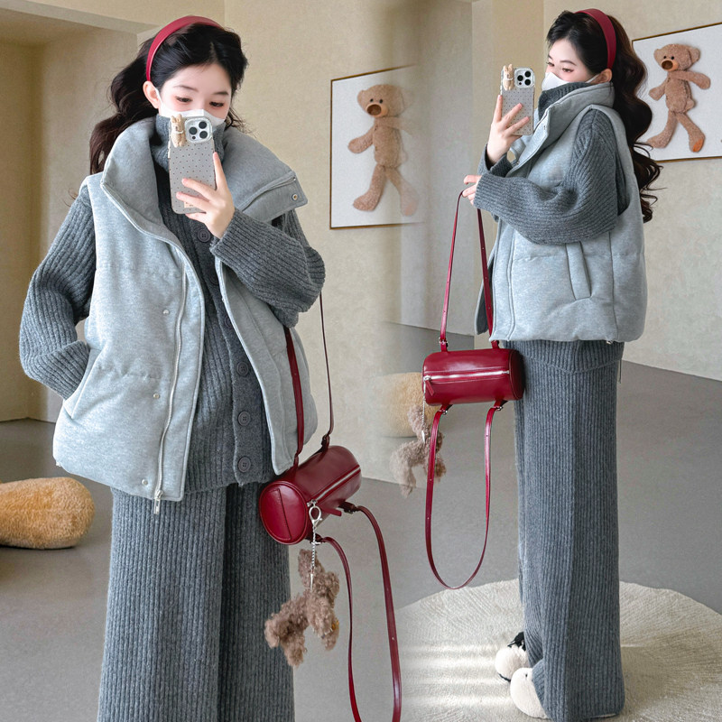 孕妇套装韩系慵懒风立领开衫棉服马甲套装秋冬宽松保暖高级感穿搭