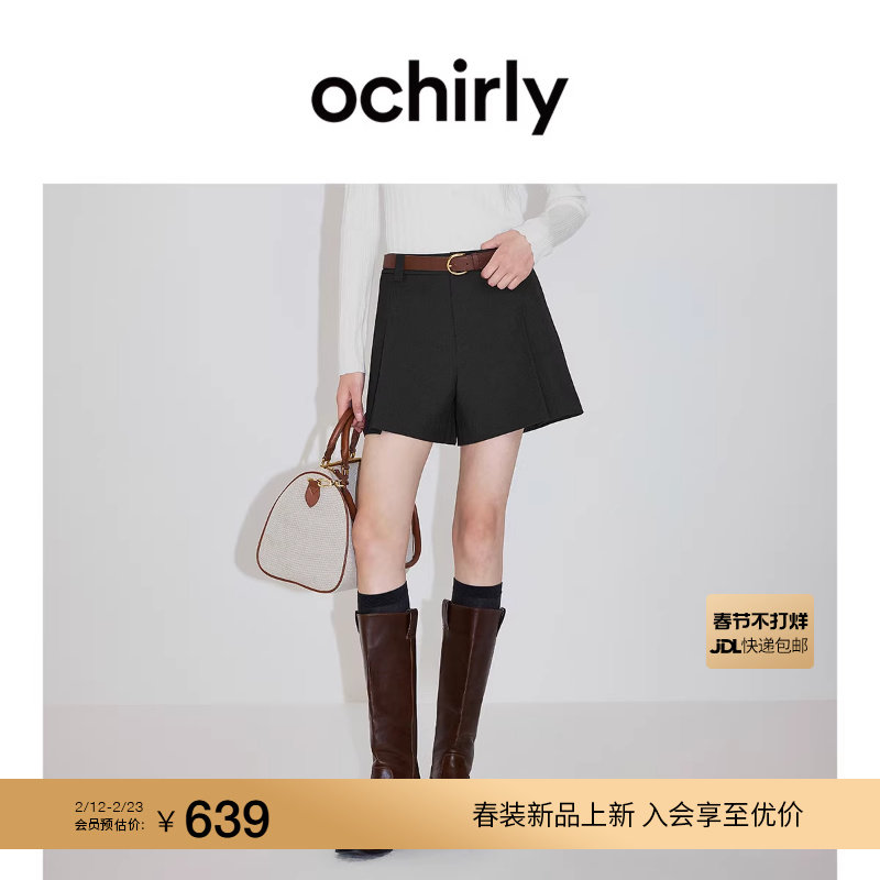 【新品】OCHIRLY欧时力 含天丝羊毛直筒西装短裤压褶显瘦2026春夏