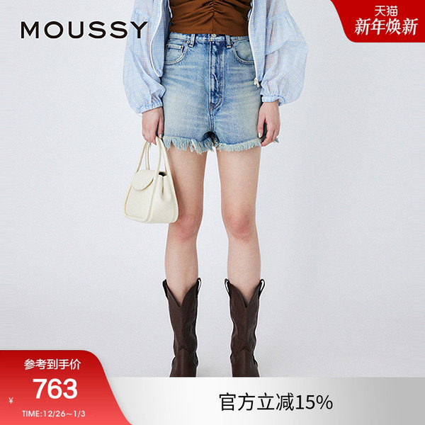 【章若楠同款】MOUSSY 夏季新品毛边牛仔裤短裤010HSA11-0560