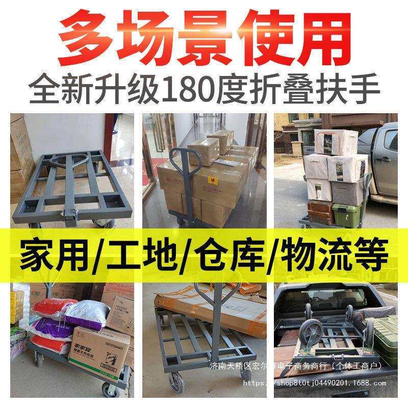小推车拉货搬运车平板车手推货车折叠便携家用静音轻便四轮小拖车