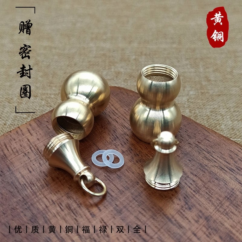 纯黄铜开口空心葫芦钥匙扣挂件药瓶挂饰速效救心丸装药罐随身吊坠