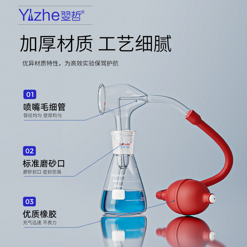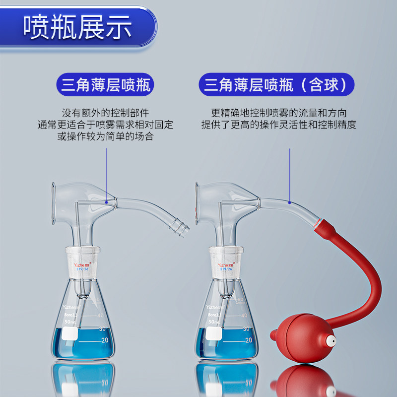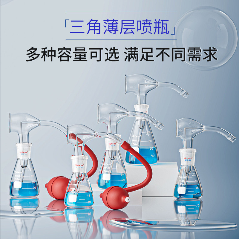 翌哲牌 三角薄层喷瓶 新型显色喷雾瓶玻璃锥形瓶三角烧瓶 薄层层析色谱显色瓶 50ml 带球器实验室玻璃器皿