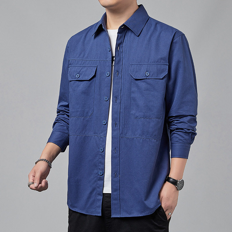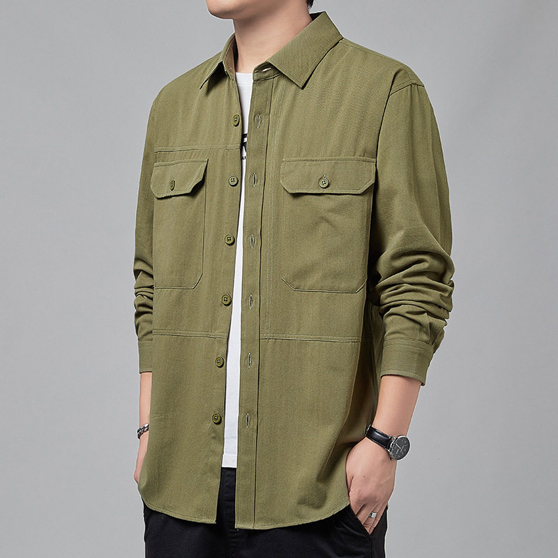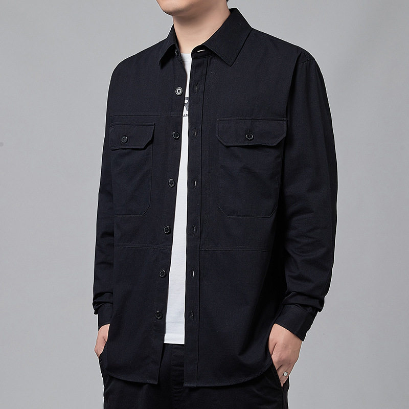 新款长袖港风衬衫男士春季工装翻领上衣服纯棉休闲衬衣外套男帅气