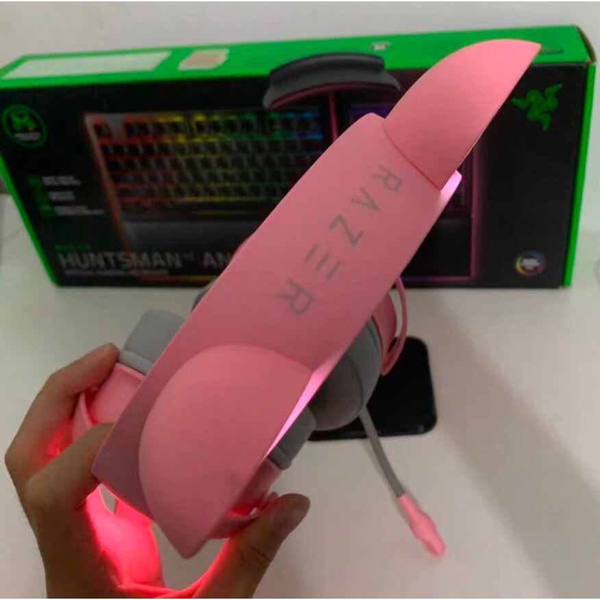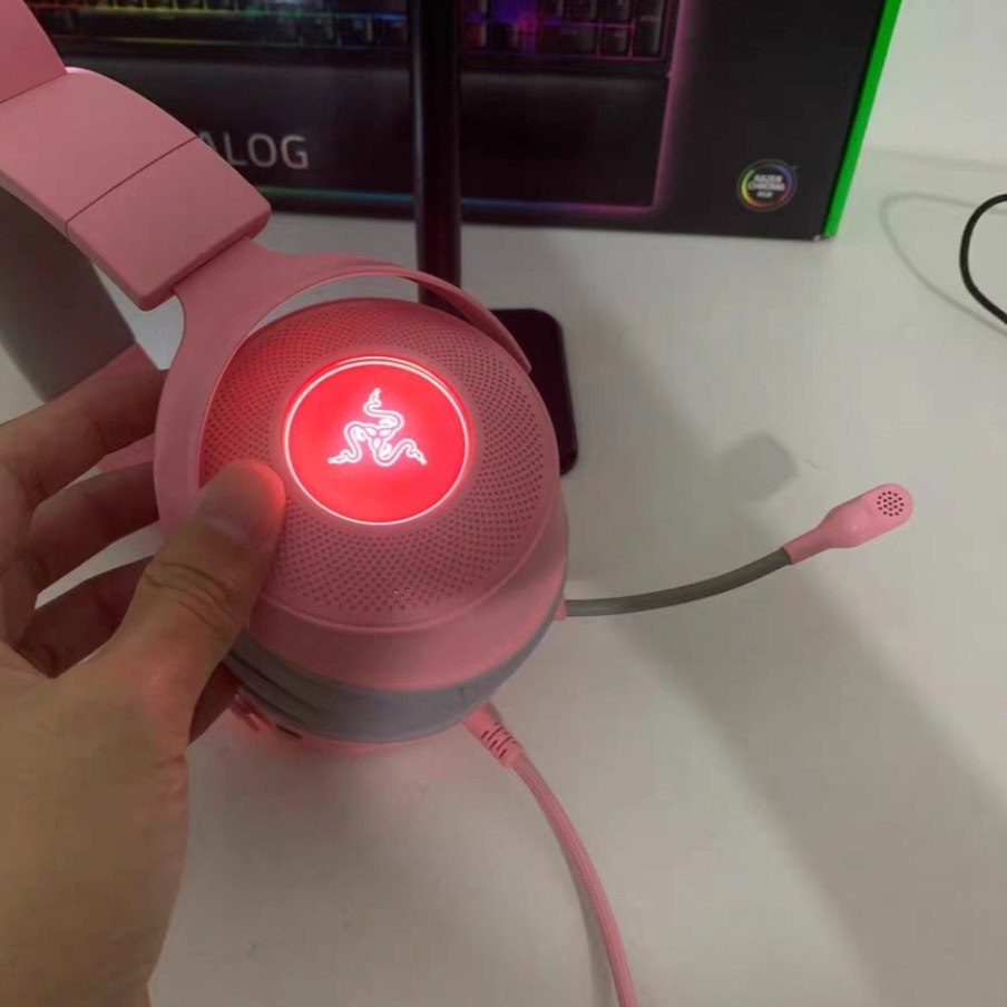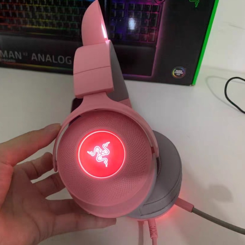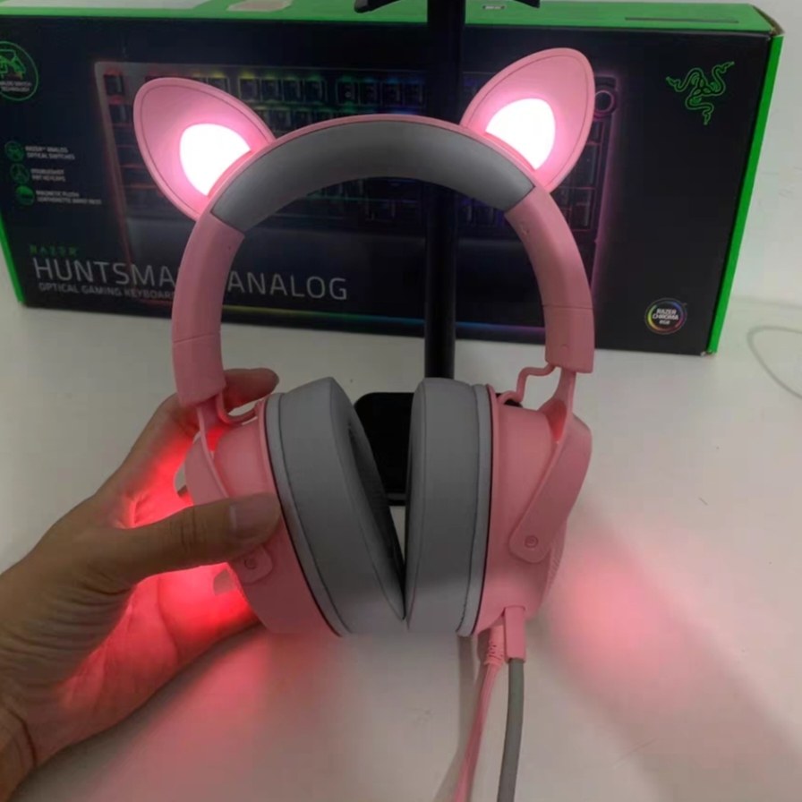 Razer雷蛇北海巨妖V2萌猫专业版粉晶游戏直播USB游戏男女可爱耳机