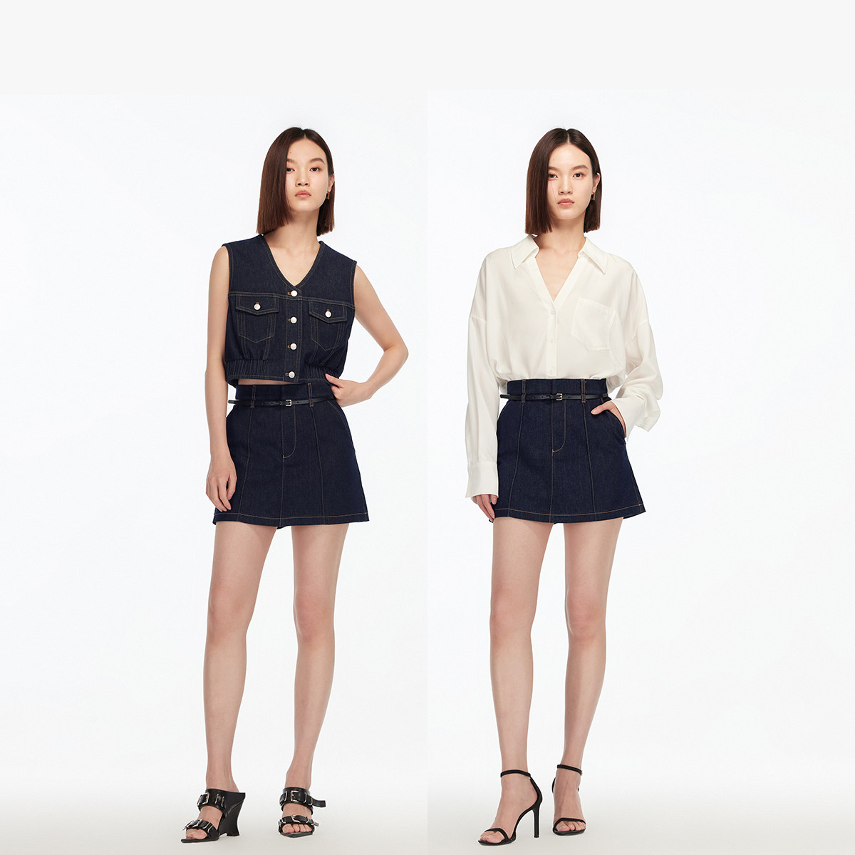 Vero Moda奥莱牛仔短裤女2025秋冬新款含棉腰带明线高腰裙裤裤子