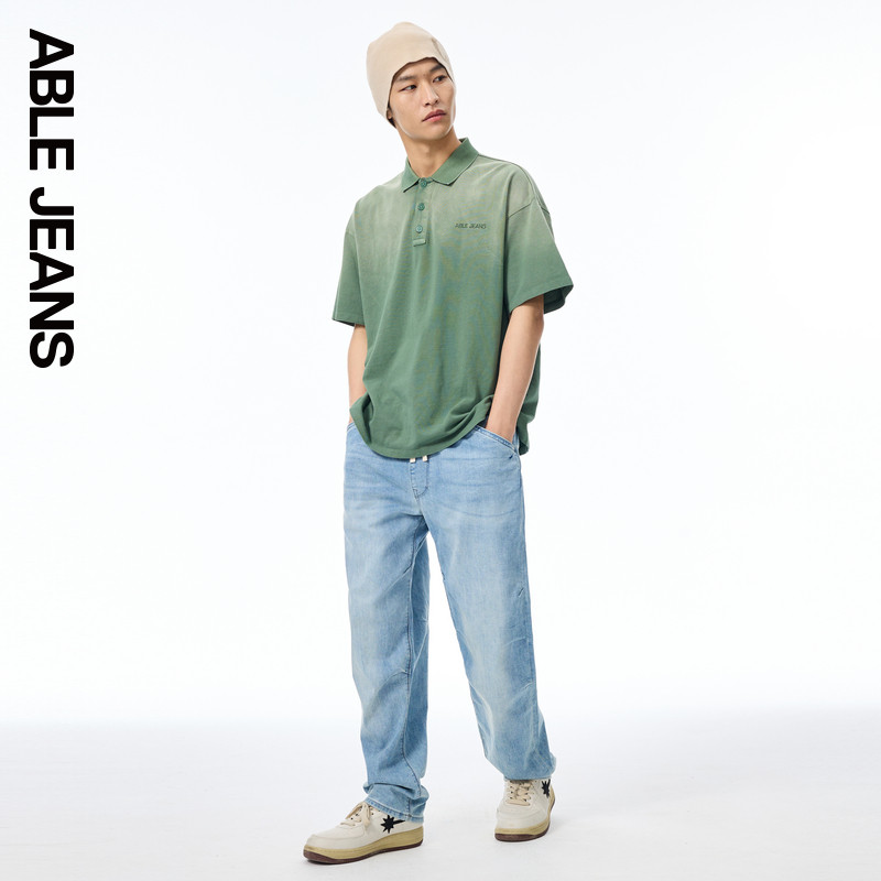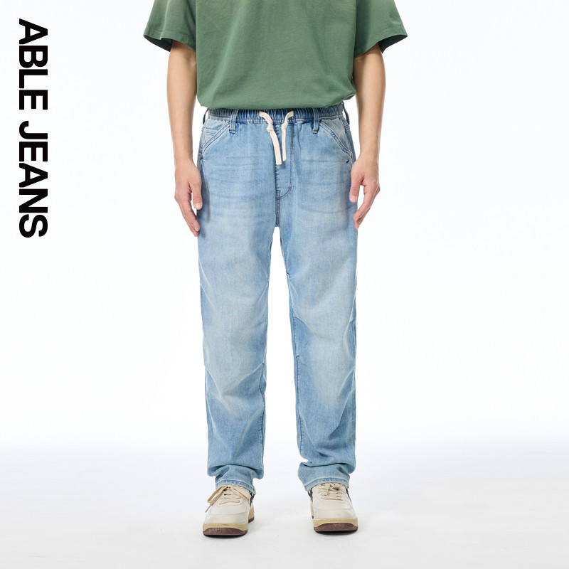 ABLE JEANS【束腰滑板裤】新款男士弹力松紧腰直筒小脚牛仔长裤