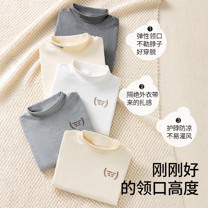 全棉母婴儿童打底衫女童A类100%纯棉半高领男宝宝长袖t恤秋冬加绒