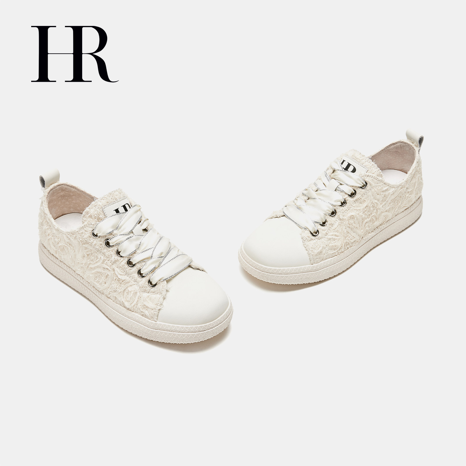 HR赫莲娜板鞋2025秋季新款休闲女鞋子平底小众小香风网纱小白鞋潮