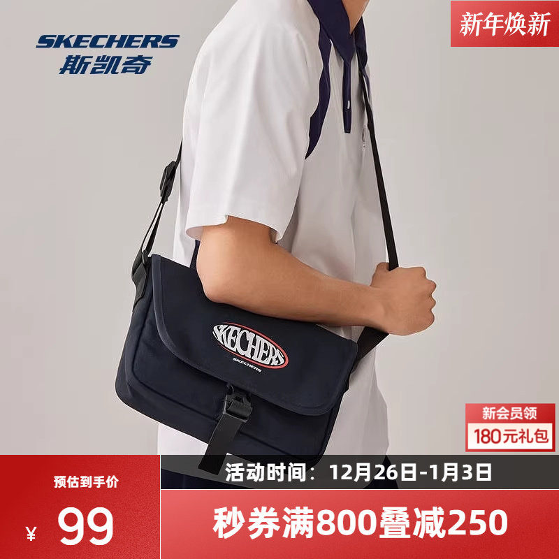 斯凯奇2025新品男女通用小型邮差包简约百搭休闲单肩斜挎包