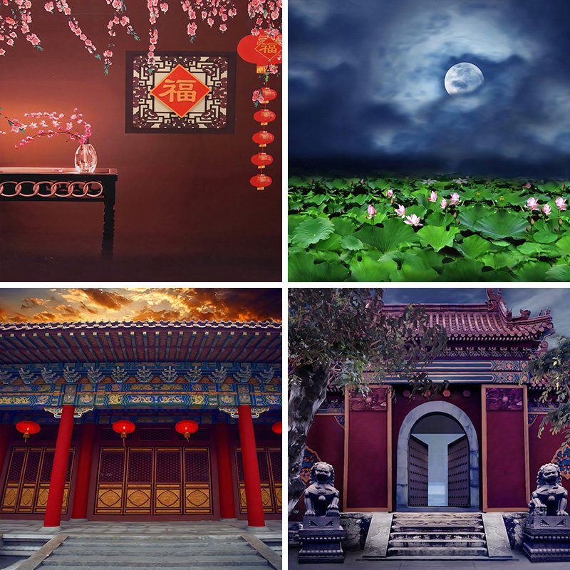 古城故宫古风古装中国风正大光明直播背景布3d立体壁纸皇宫画月亮荷花直播间场景布置高级感网红拍照区男女