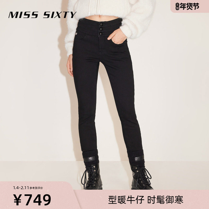【保暖复合绒】Miss Sixty女牛仔裤三环高腰小脚加厚铅笔加绒裤子