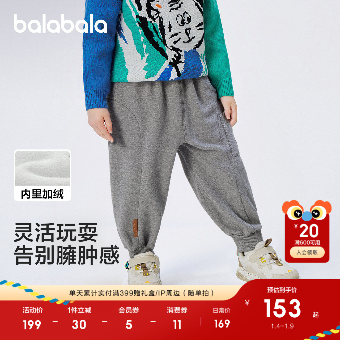 【李佳琦直播间】齐齐熊男童新年打底毛衣裤子冬款宝宝格子裤儿童