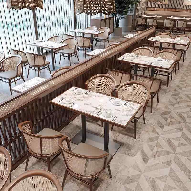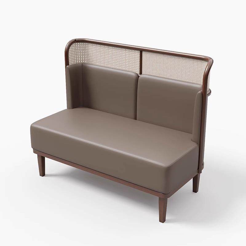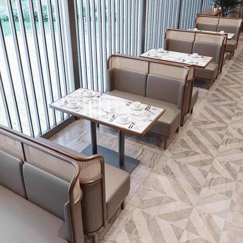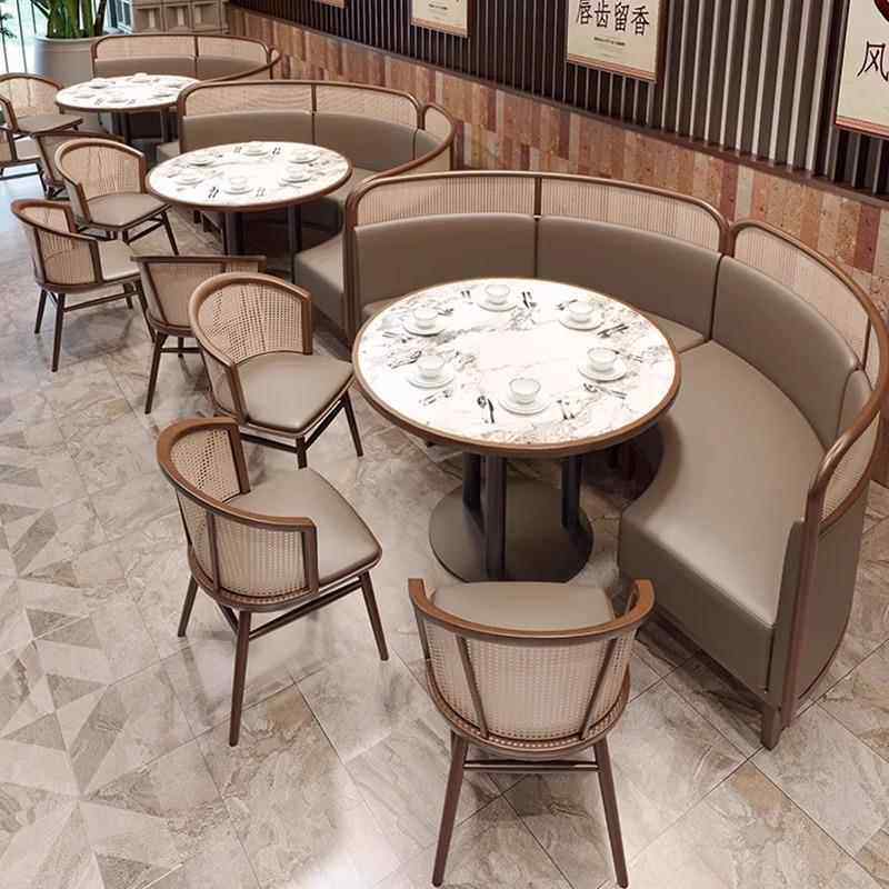 卡座沙发商用火锅店湘菜馆茶楼餐厅实木编藤桌椅组合圆桌商用卡座