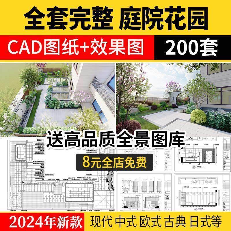 别墅庭院景观装修设计效果图片花园露台乡村户外院子CAD施工图纸