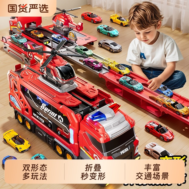 儿童玩具消防警车轨道6变形滑行弹射合金小汽车飞机男孩3礼物小车