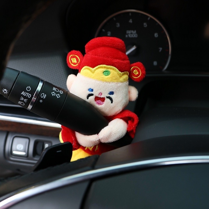 汽车怀挡装饰财神毛绒公仔车内饰发财卡通摆件转向灯雨刮器玩偶女