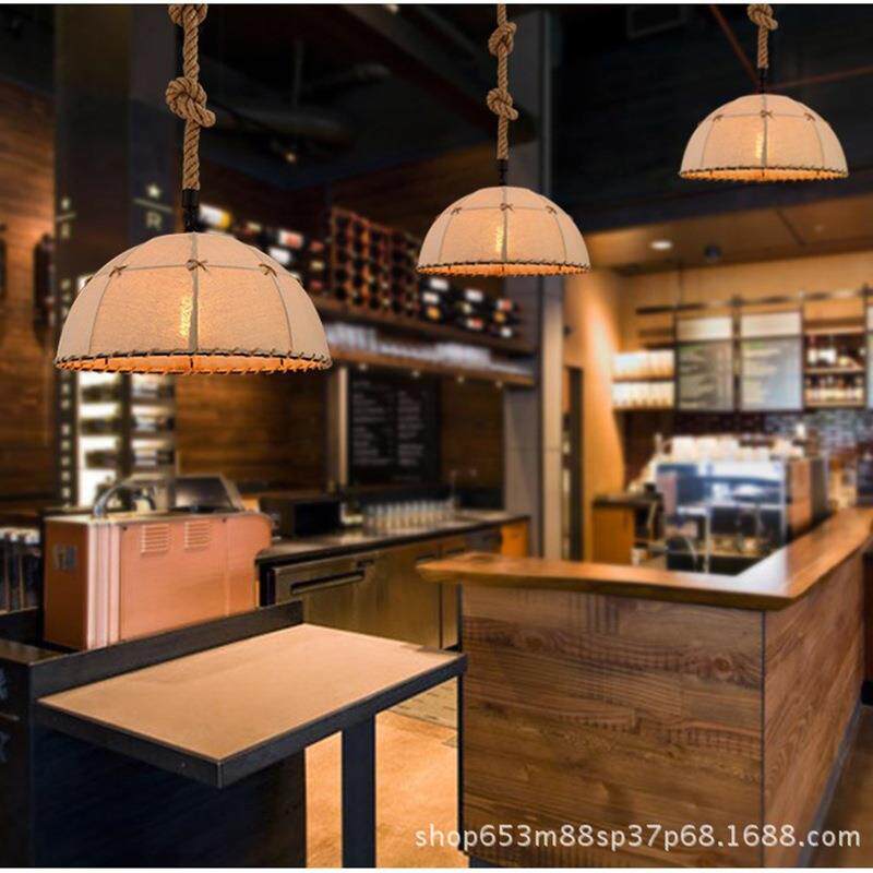 LOFT怀旧复古麻布麻绳吊灯美式乡村简约灯饰布艺创意餐厅民宿灯具