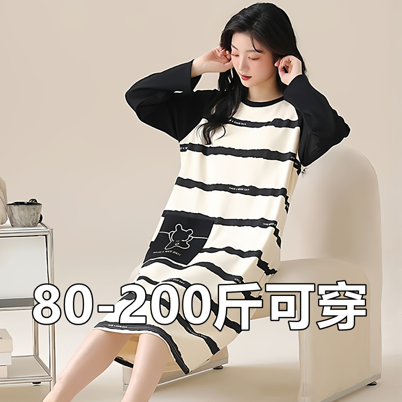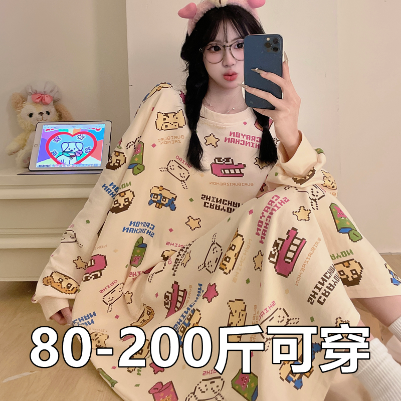 春秋款睡裙长袖女士韩版卡通家居服大码200斤睡衣孕妇连衣裙胖mm