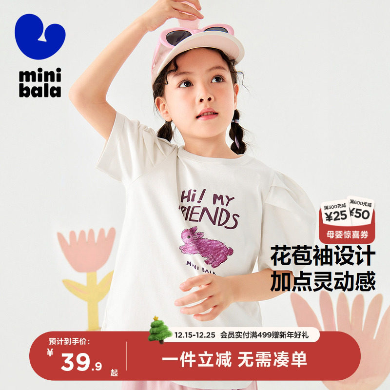 【速干纯棉】迷你巴拉巴拉女童不闷汗柔软亲肤不易变形短袖T恤