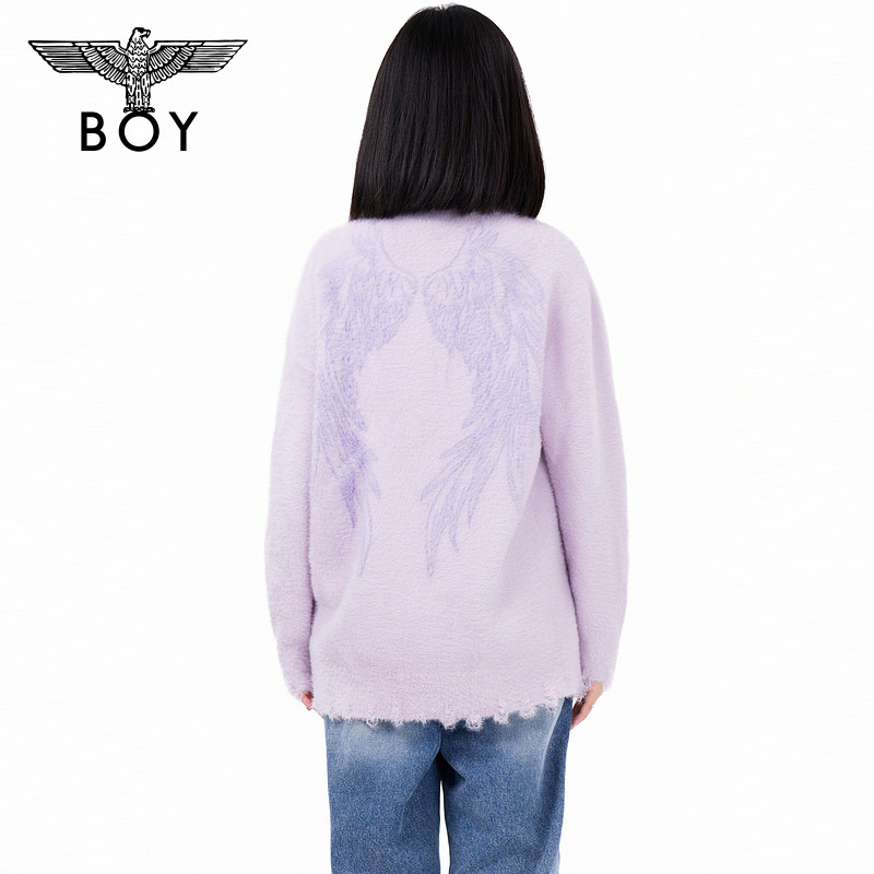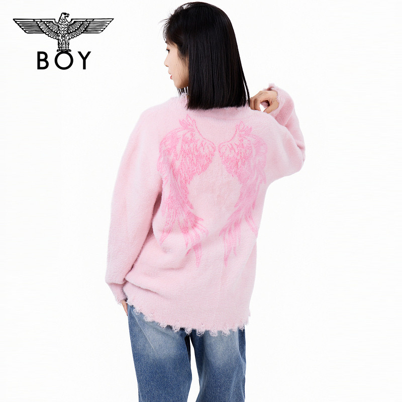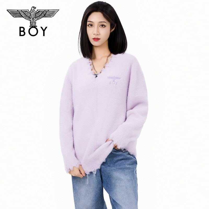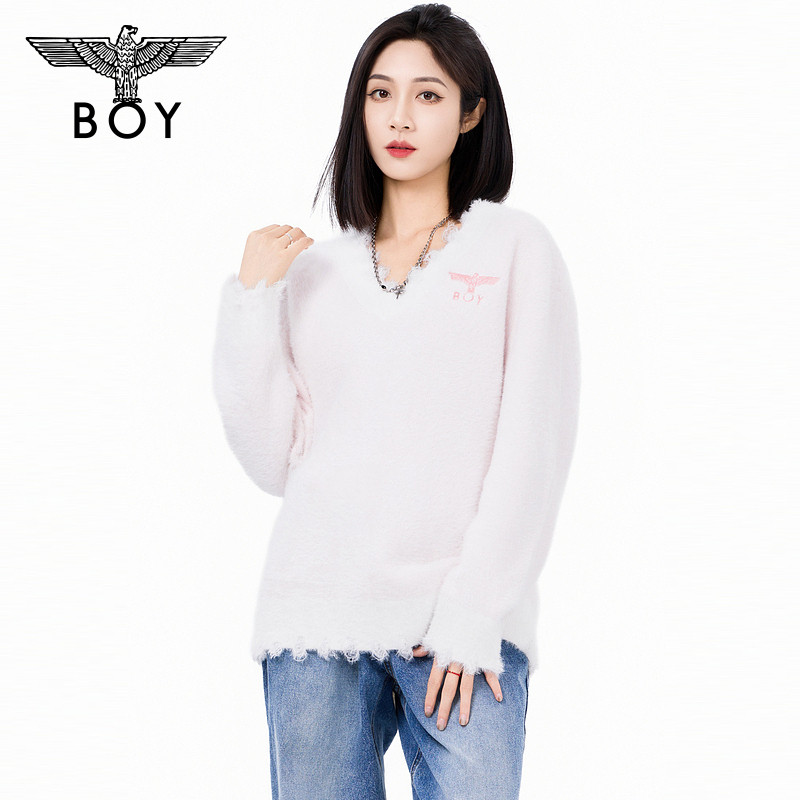 【柔雾天使】BOYLONDON春秋仿貂绒潮牌女款V领长袖针织毛衣W60902