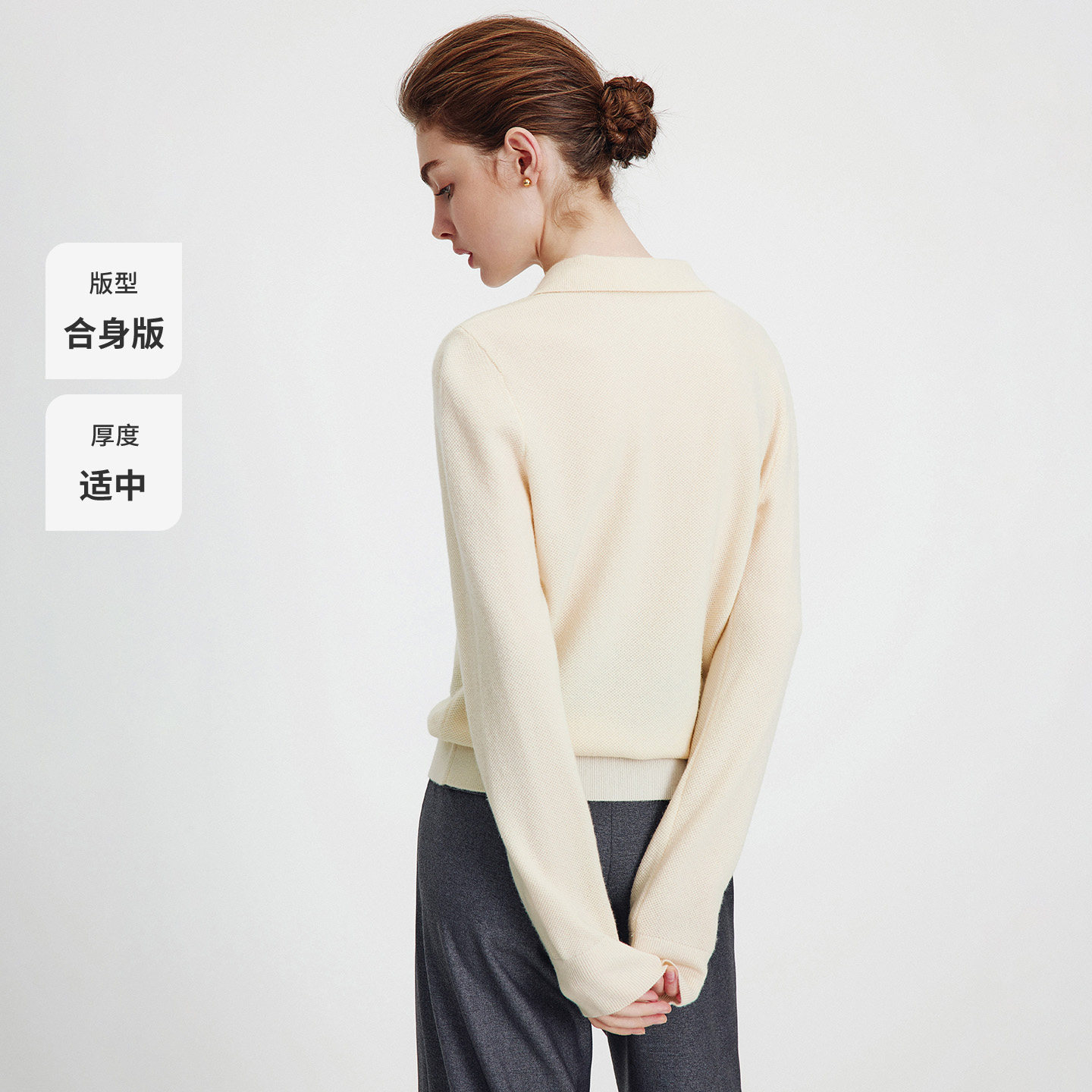 蕉下针织衫polo领肌底衣修身显瘦新款白色长袖T恤内搭上衣打底衫