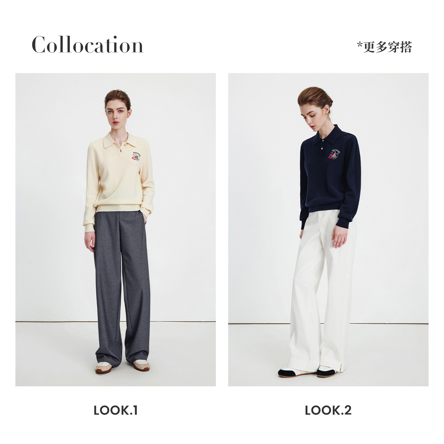 [纯羊毛]Navigare意大利小帆船针织打底衫女士秋季新款翻领毛衣