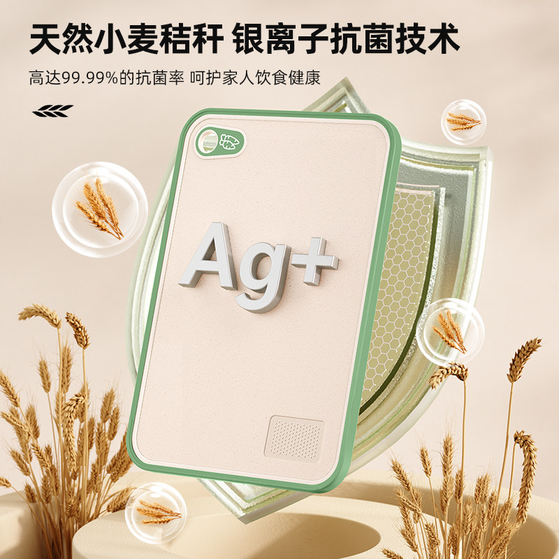 小麦桔杆菜板圆孔家用切菜板双面抗菌防霉厨房切水果粘板塑料砧板