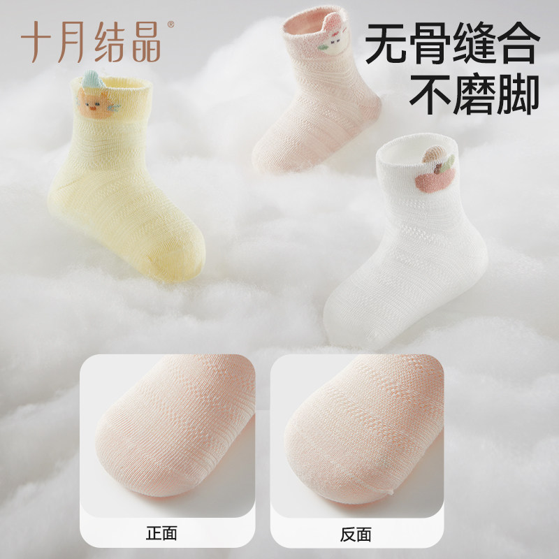 十月结晶宝宝袜子夏薄网眼防蚊a类透气春秋儿童袜无骨松口婴儿袜