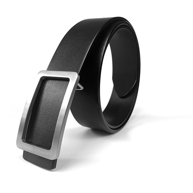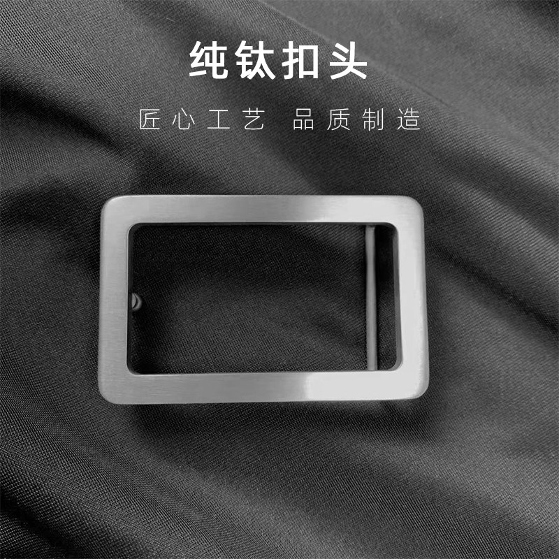 纯钛合金男士方形镂空O型扣头层牛皮带轻防过敏百搭时尚商务腰带