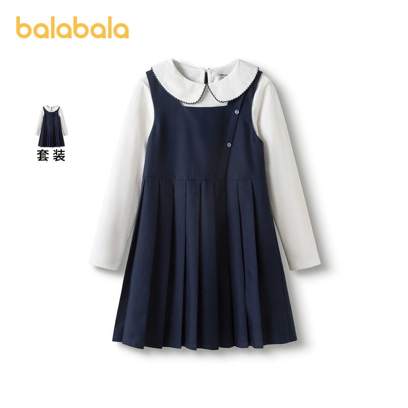 巴拉巴拉童装儿童连衣裙女童春秋装学院风洋气时尚背带裙两件套甜