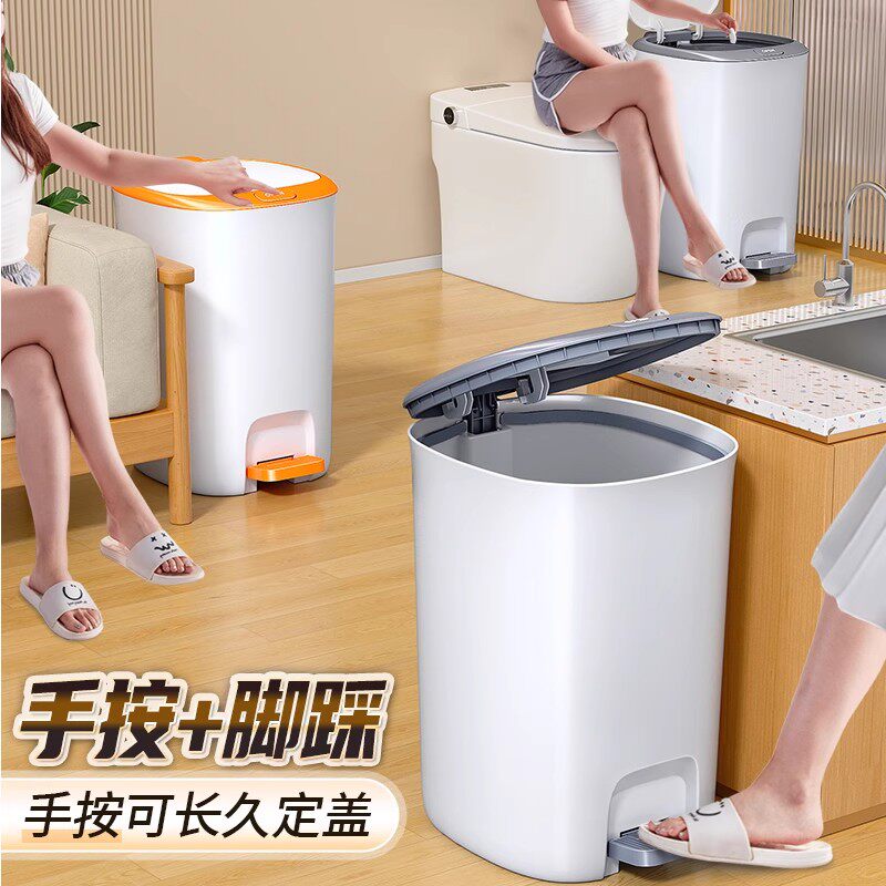 垃圾桶家用卫生间厕所带盖厨房客厅大号大容量脚踩手按2025新款