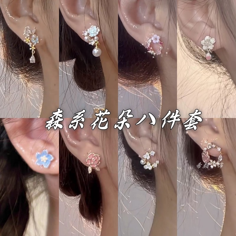 花开物语 精致蝴蝶花环耳钉小众设计甜美耳环925银针高级感耳饰女