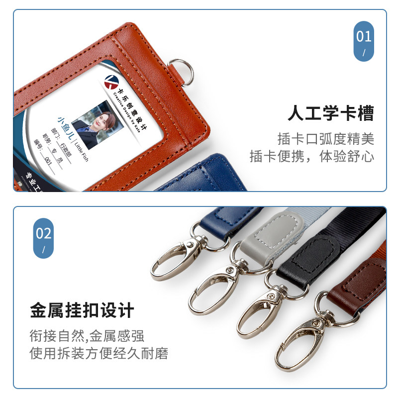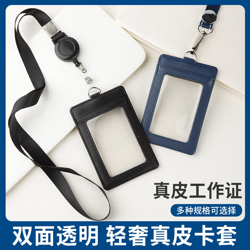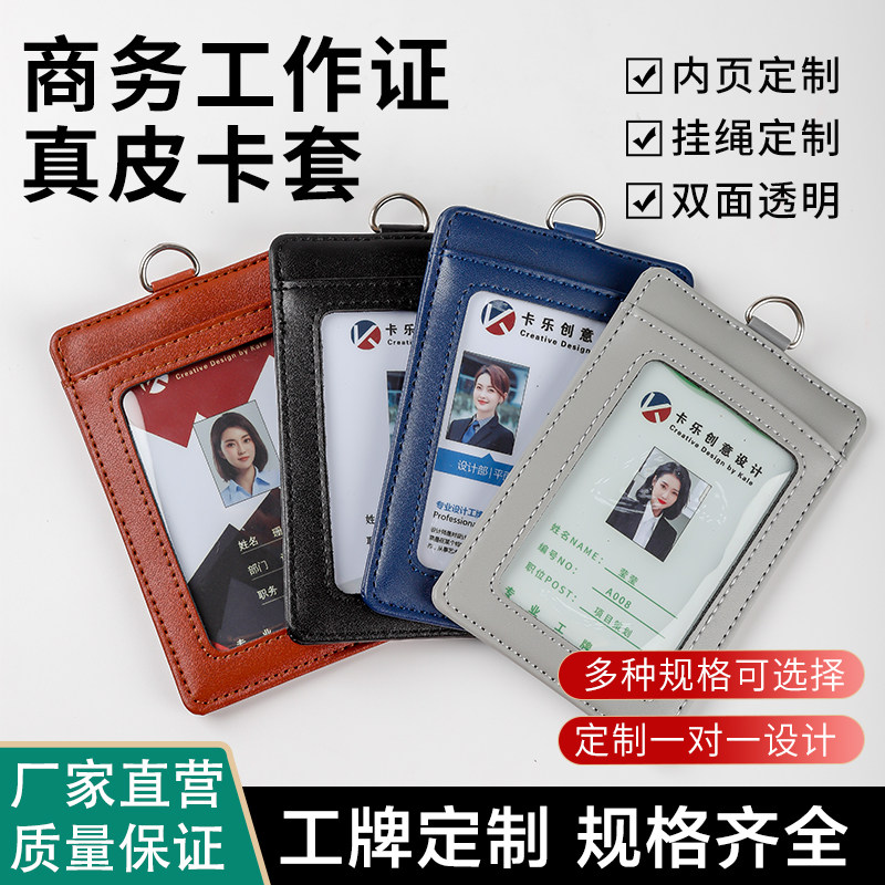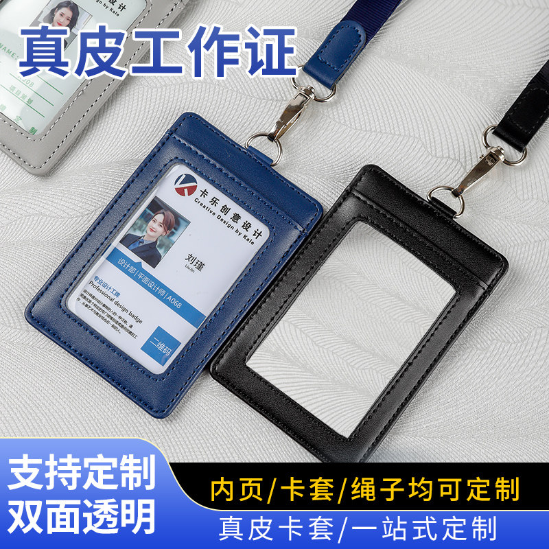 双面透明真皮工作牌卡套定制胸牌工牌挂绳员工厂牌学校公交工作证
