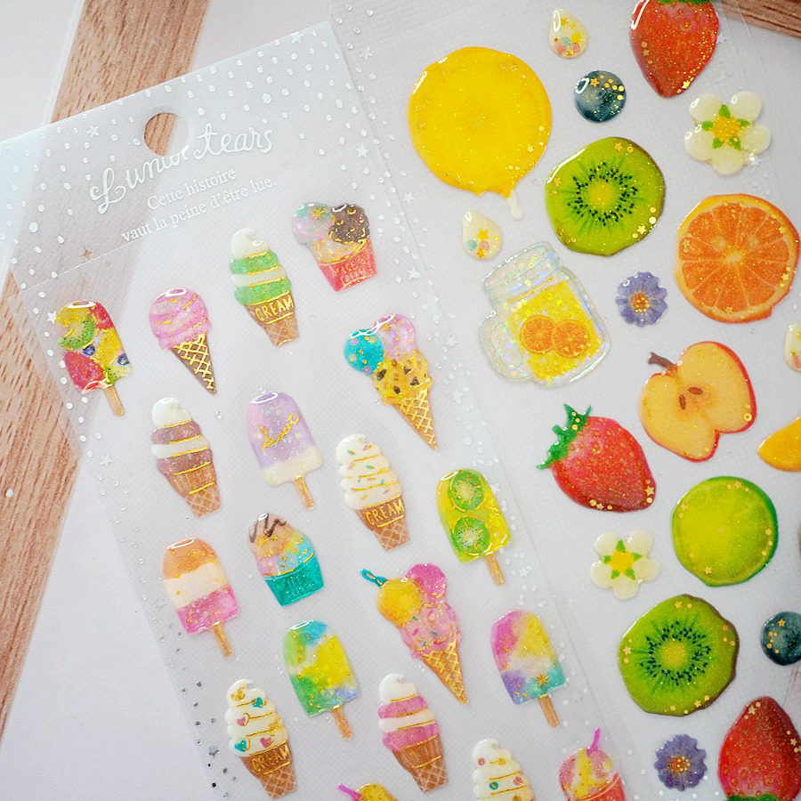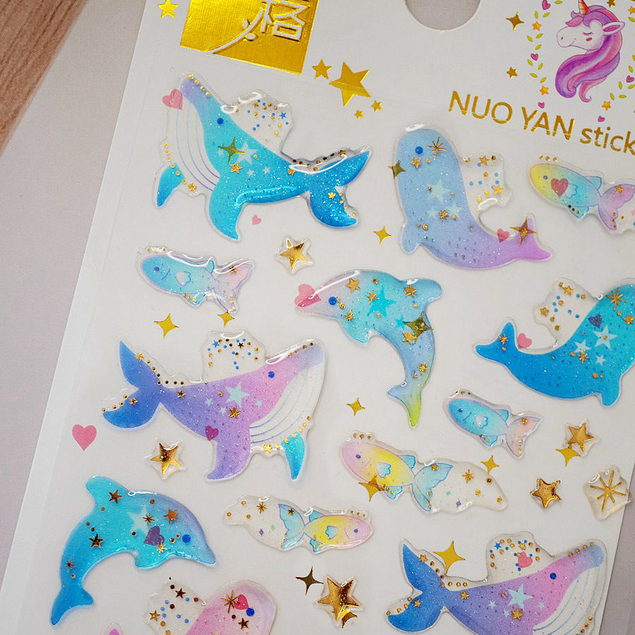 4张包邮粉红钻石蓝色行星座海豚贝壳水母冰淇淋水果装饰手帐贴纸