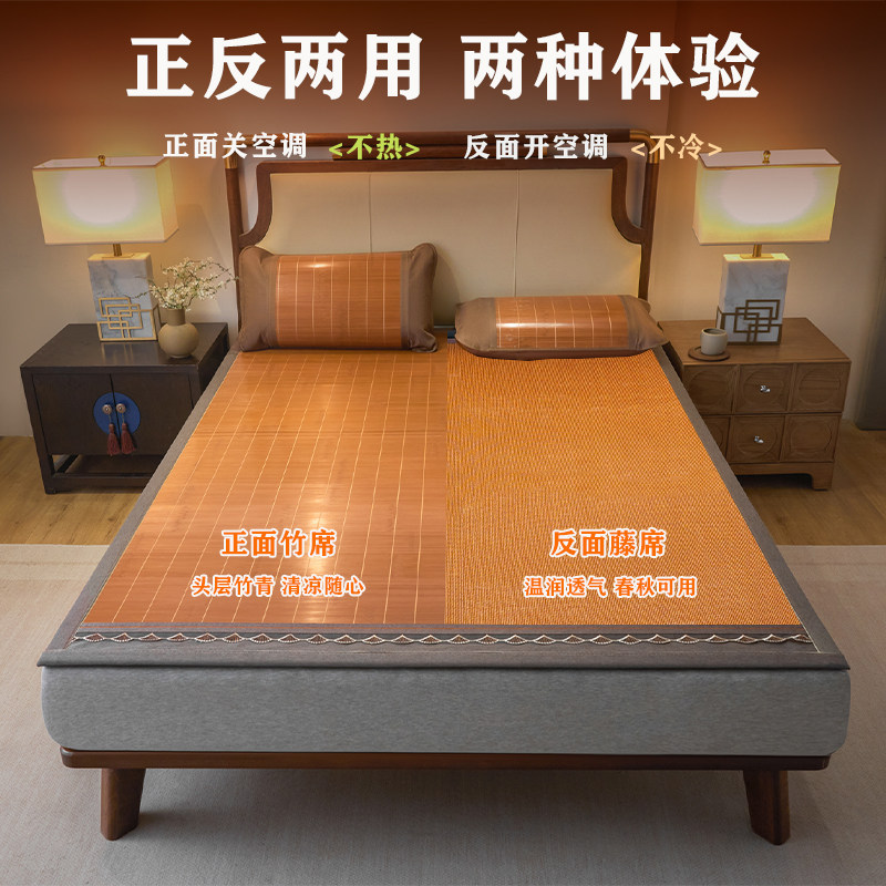 夏季凉席冰丝藤席家用双人床可折叠空调草席子老式冬夏两用天然软