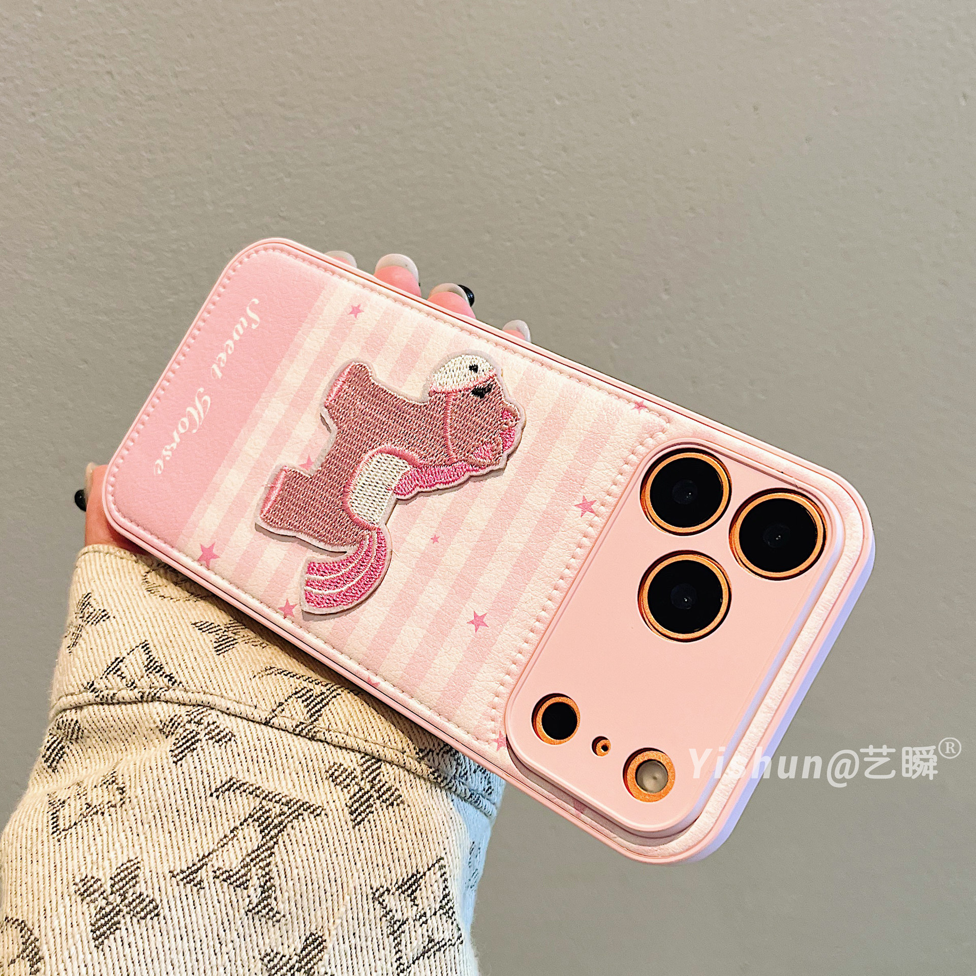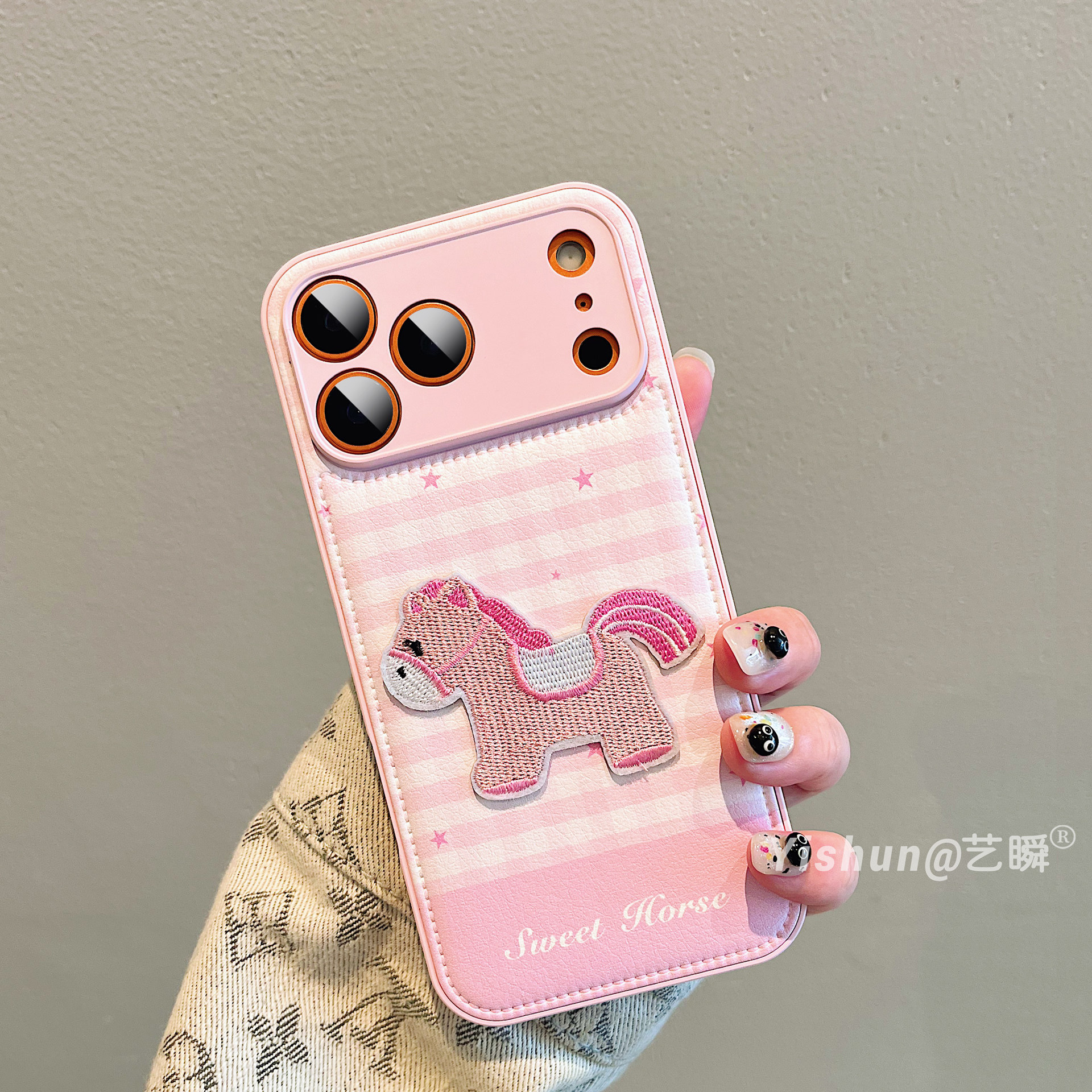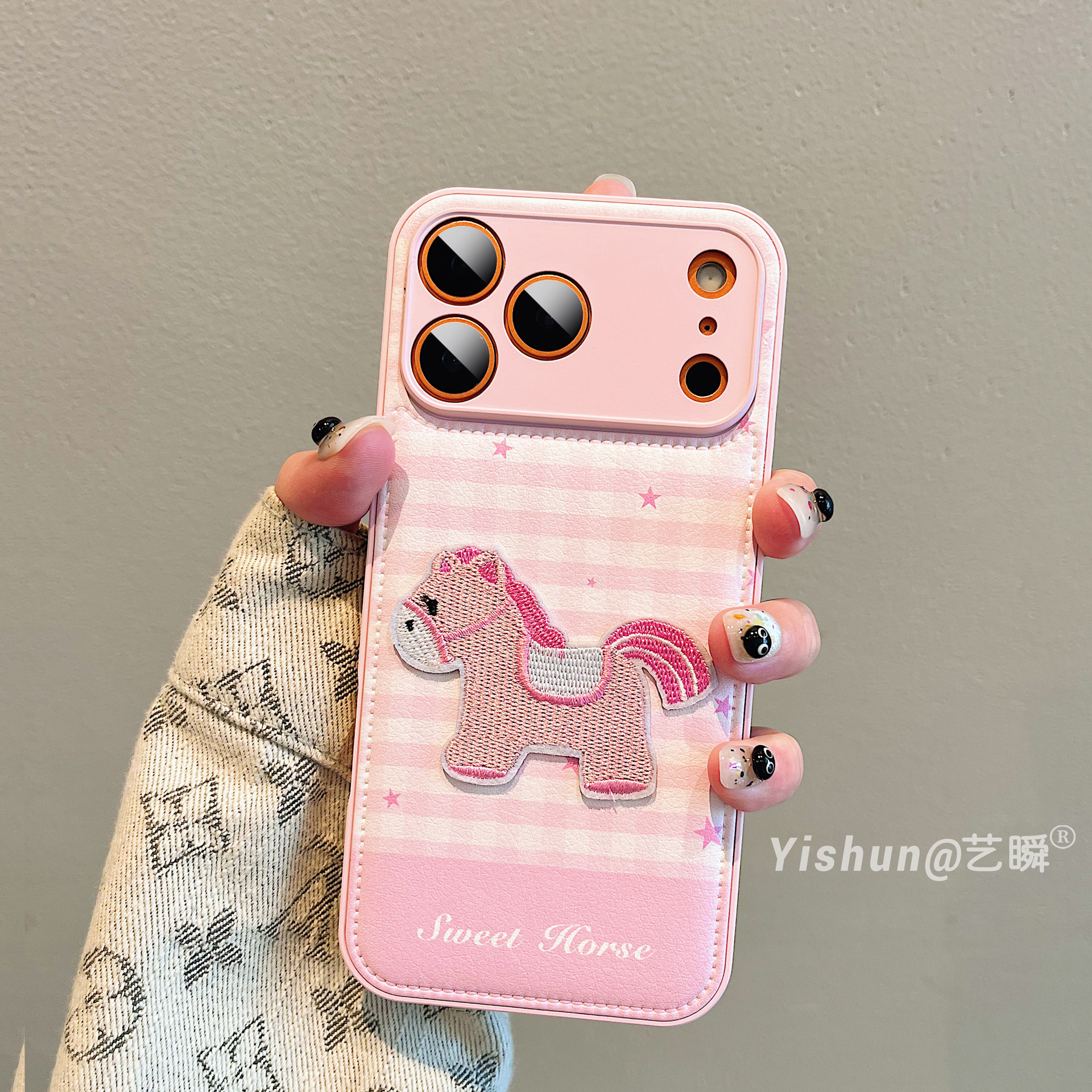 秋冬新款粉嫩少女心卡通可爱小马适用iPhone17ProMax手机壳苹果16pro皮质鼓包13全包镜头15pro甜妹14女保护套