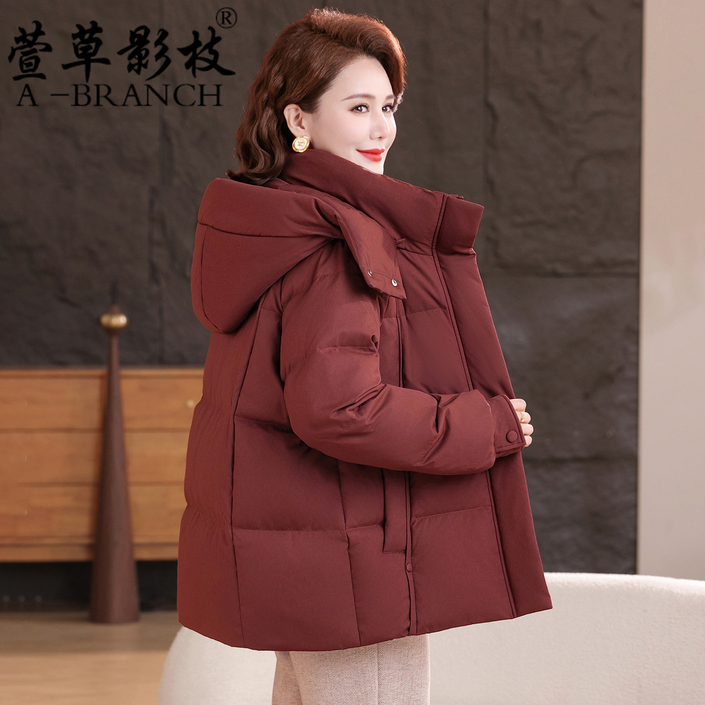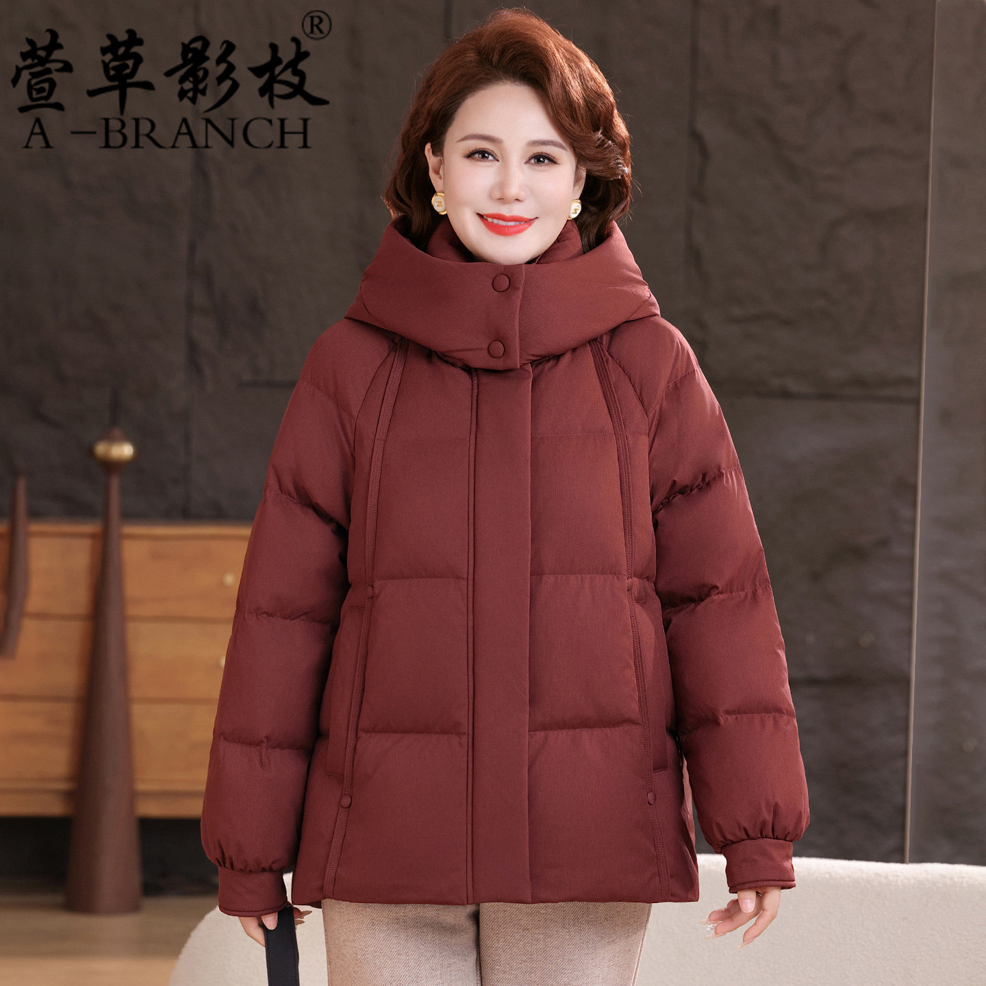 妈妈冬装洋气连帽羽绒服短款中年女时尚大码外套中老年保暖厚棉袄