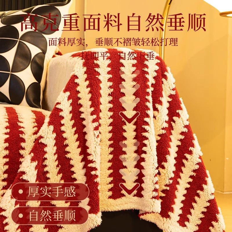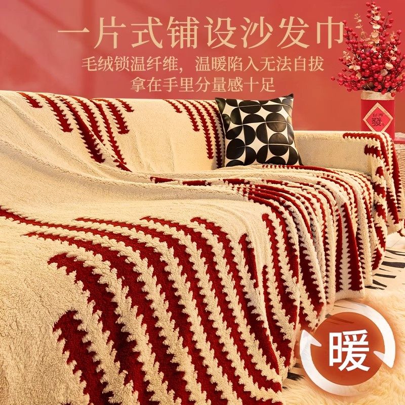 结婚氛围感沙发盖布秋冬季新款喜庆全包红色一整张防滑沙发巾盖毯