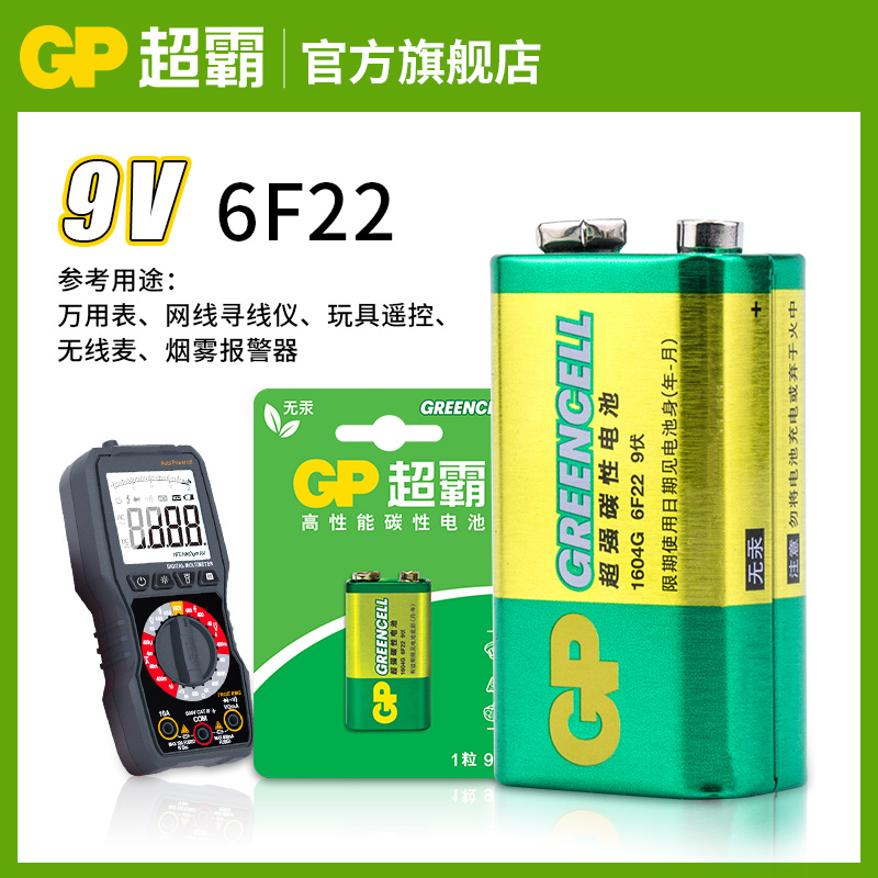 GP超霸绿超10粒装9V方块九伏碳性电池万用表万能表音响无线话筒麦克风烟感器方形层叠干电池测线仪