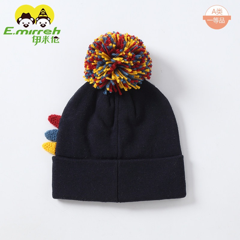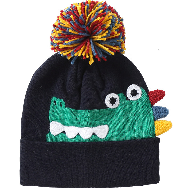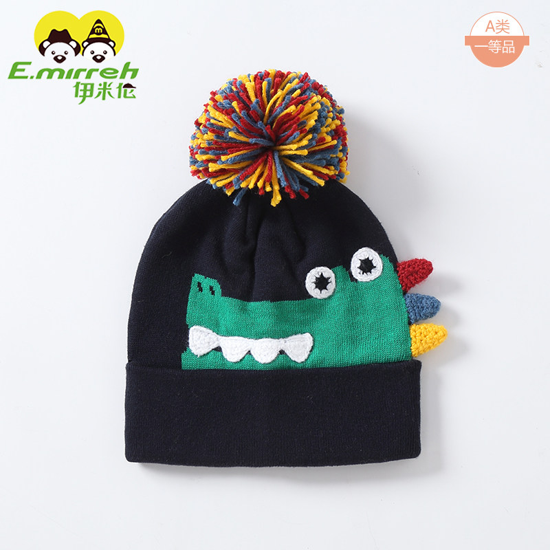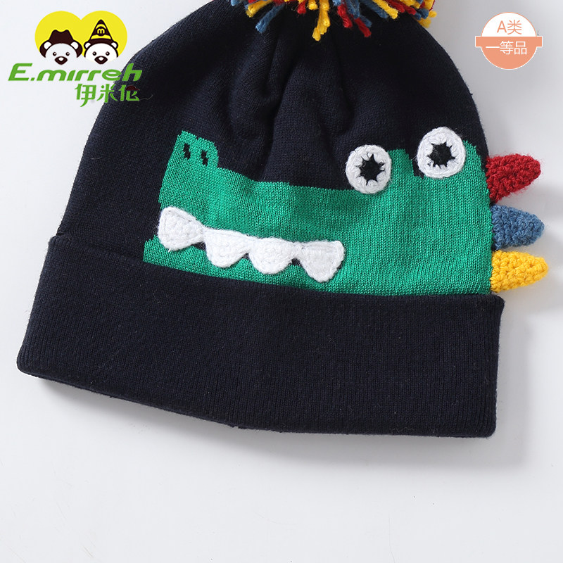 伊米伦宝宝帽子秋冬可爱超萌男童帽子针织帽婴儿毛线帽卡通恐龙帽