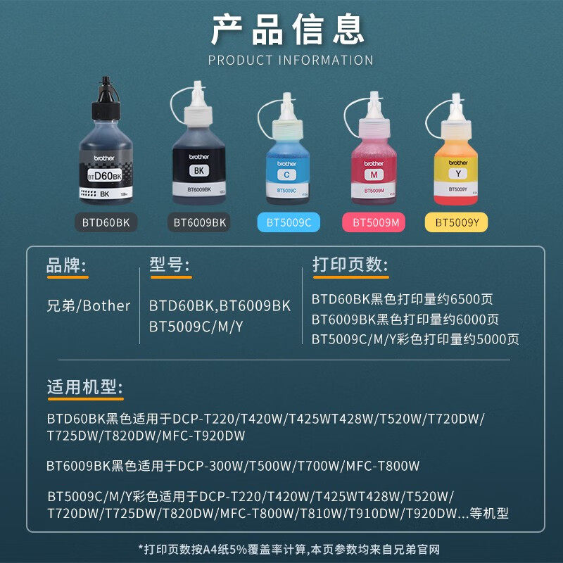 兄弟D60bk原装墨水黑色 T510W T520W T710W T720DW T725DW打印机