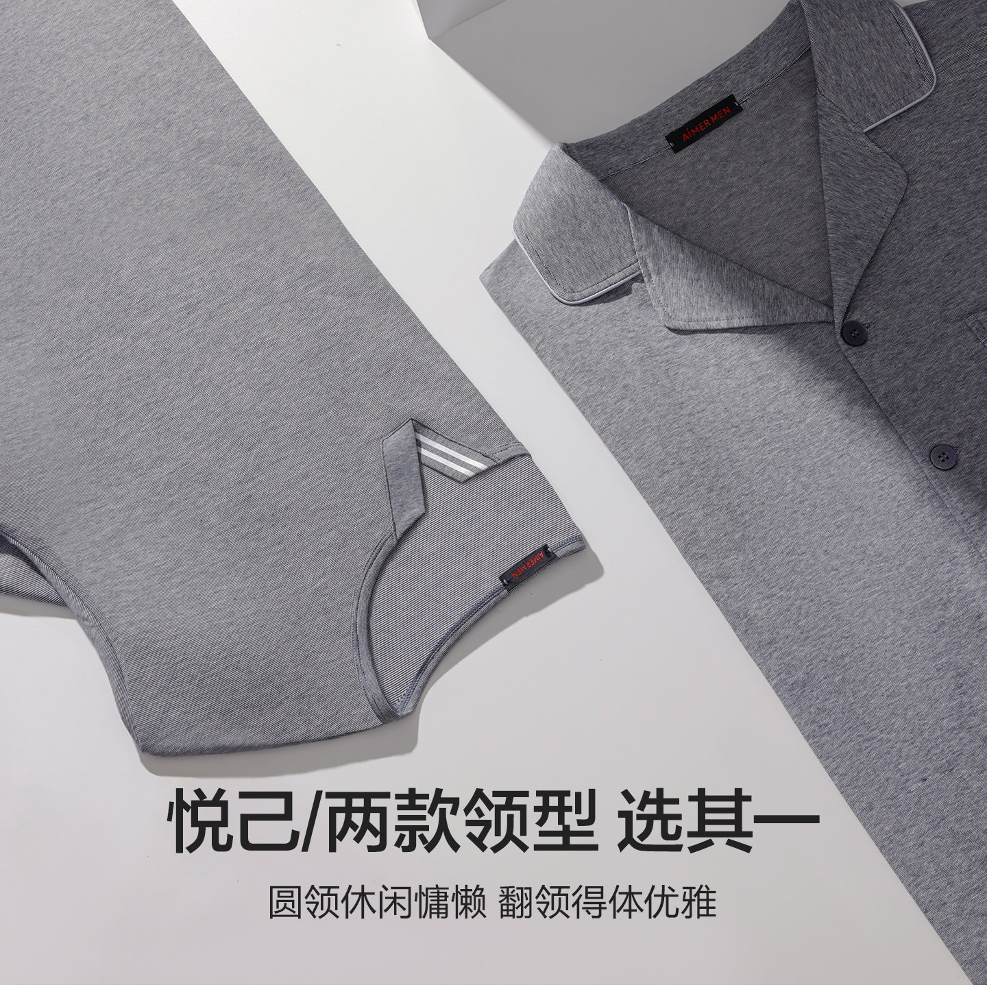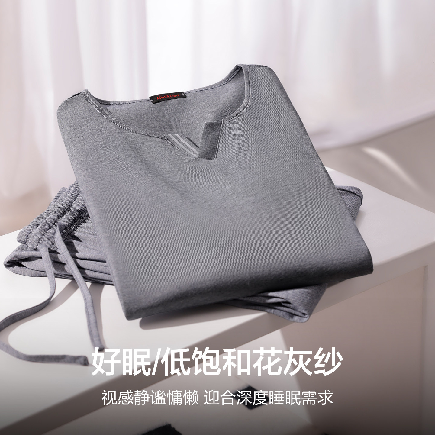 爱慕先生棉质抗静电抗菌男士家居睡衣套装长袖长裤套头秋冬可外穿