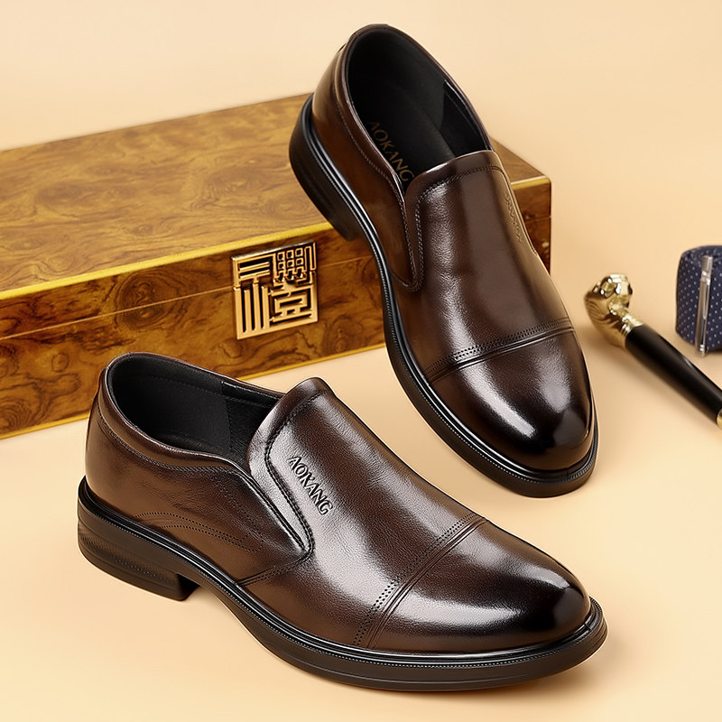 意尔康男鞋2025新款冬秋季真皮正装商务男士皮鞋结婚新郎加绒软底
