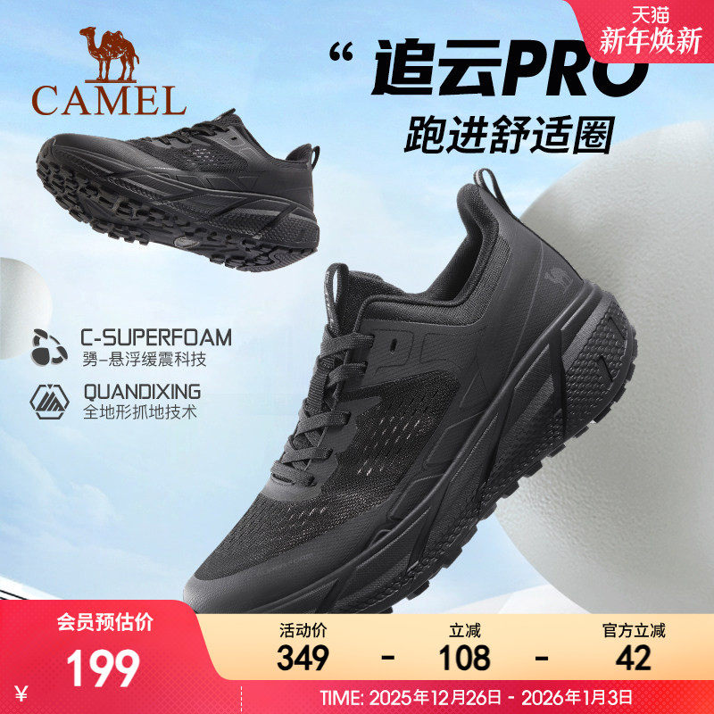 【全地形】骆驼追云运动鞋男黑色网面透气防滑轻便跳绳鞋女跑步鞋