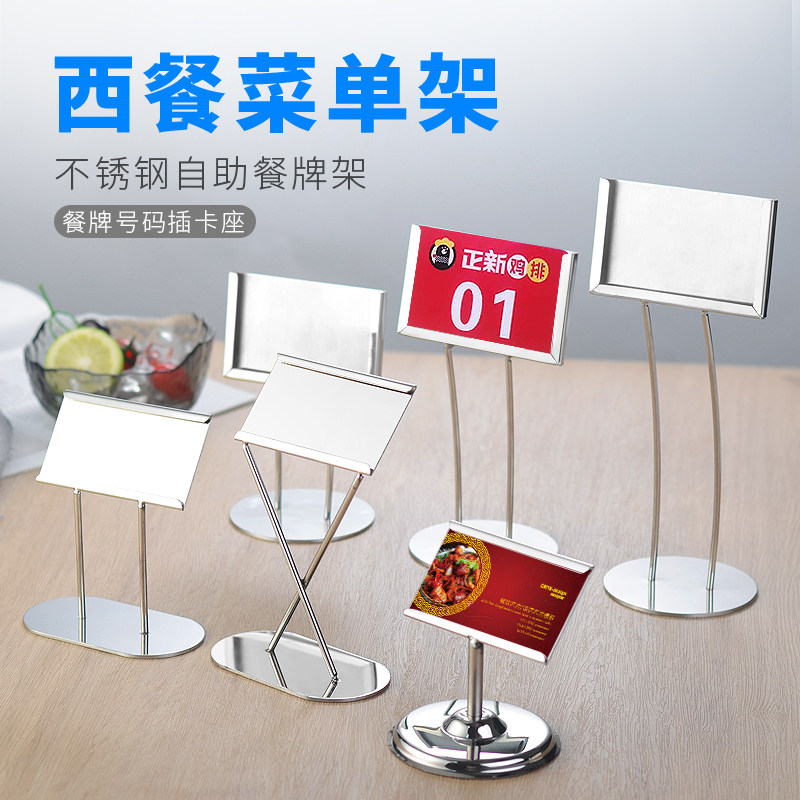 不锈钢台号牌餐桌座菜牌台卡架自助餐菜名座名片席位卡夹婚庆桌架
