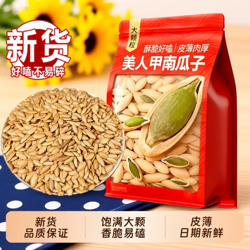 美人甲茶盐味长粒新疆南瓜子熟带壳大颗粒南瓜籽炒货干果零食批发
