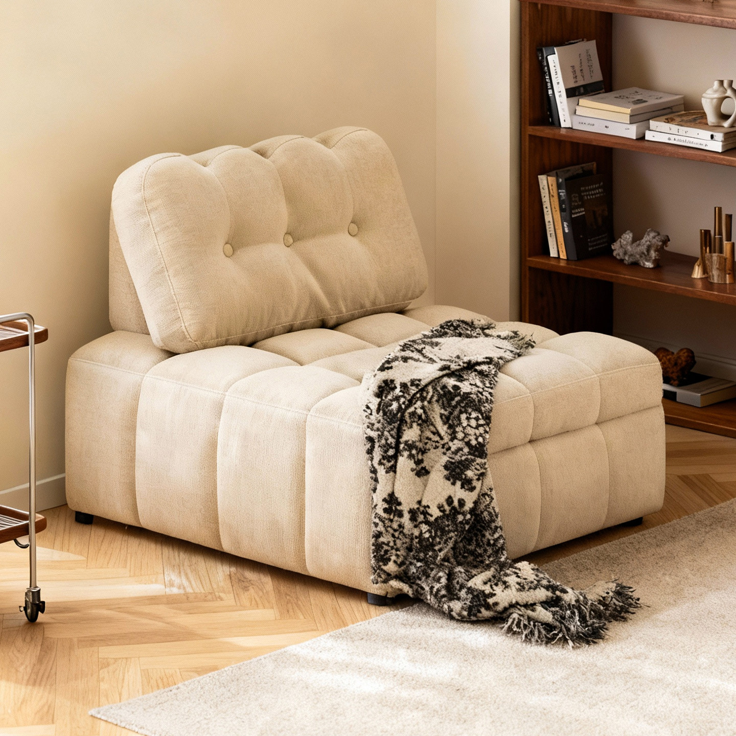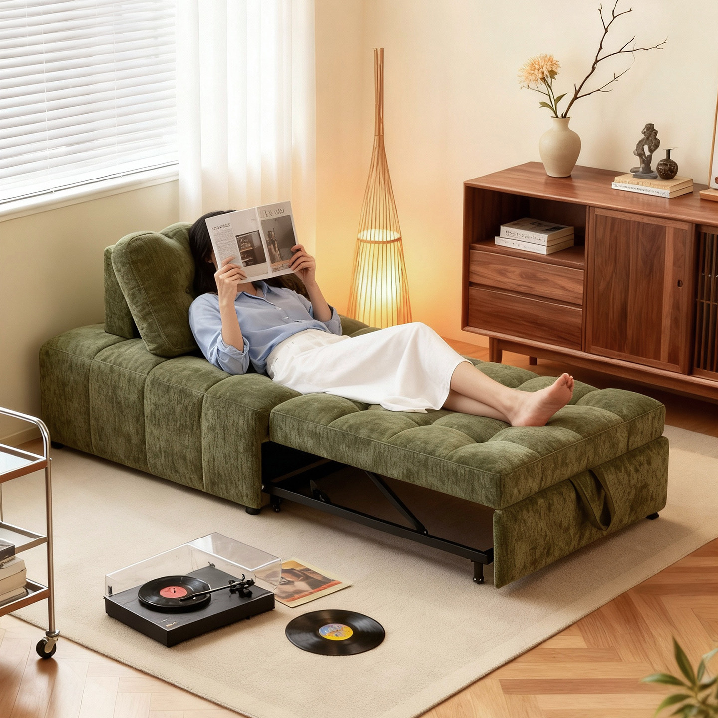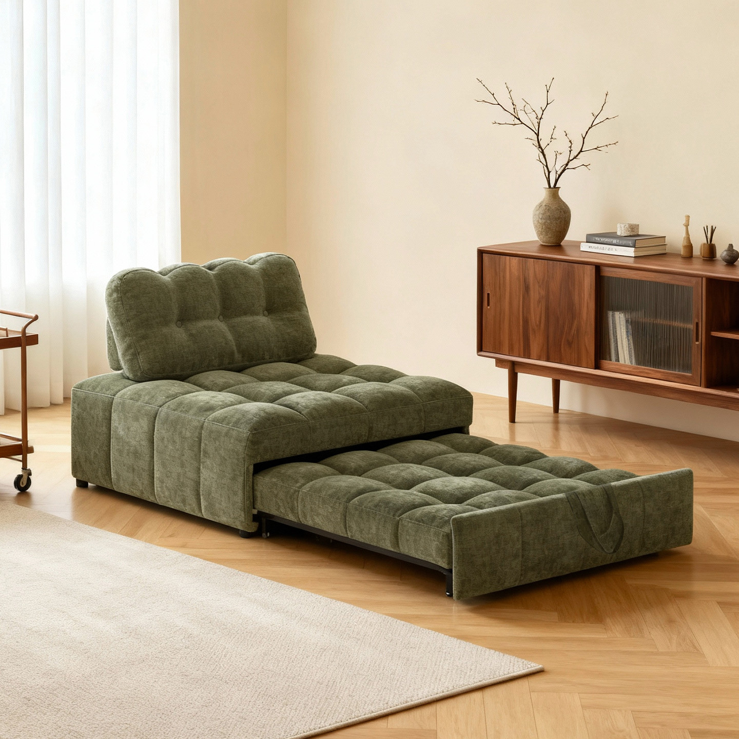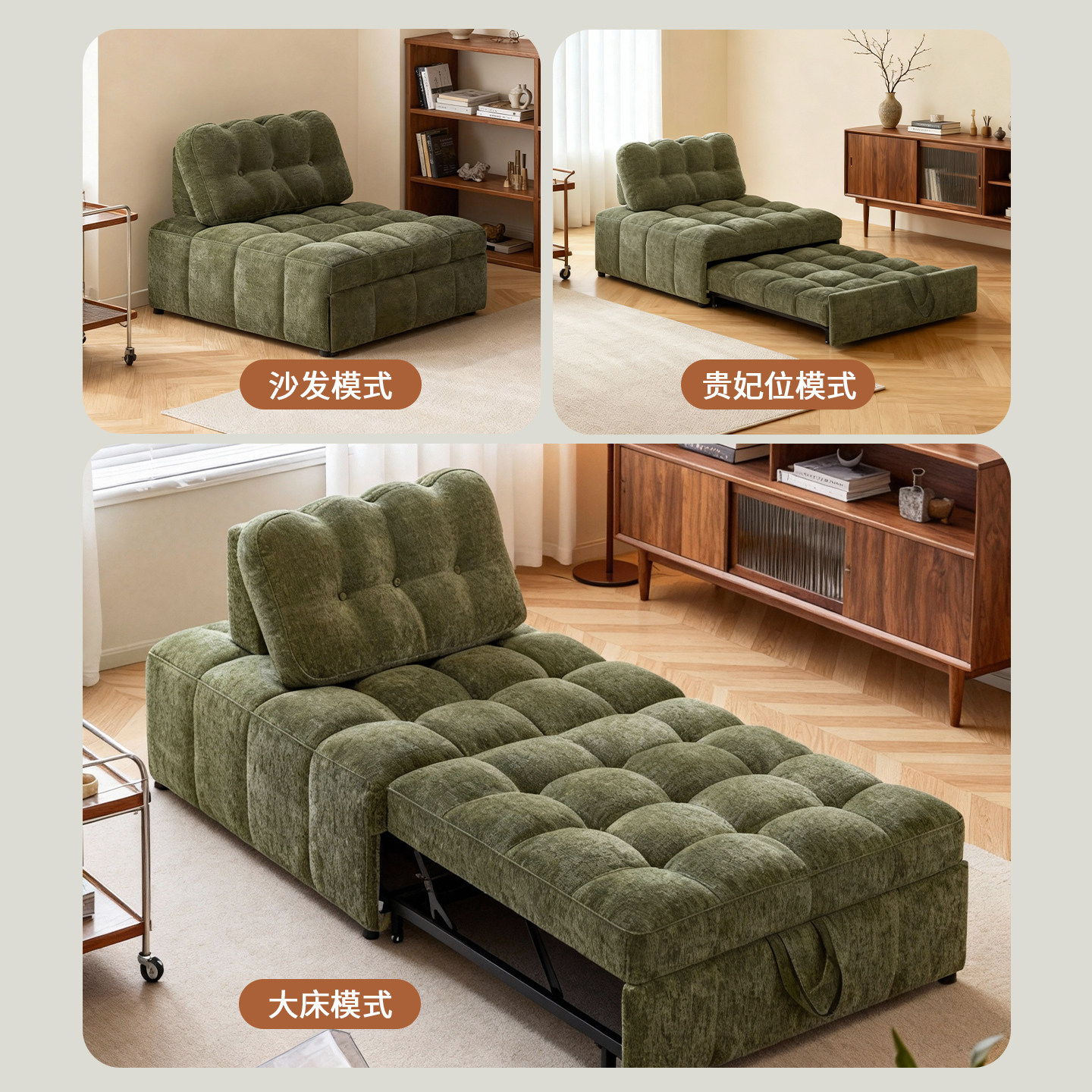 司朴绿色雪尼尔泡芙沙发床小户型可调节靠背伸缩一体新款单人沙发