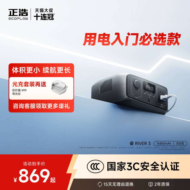 【广东国补15%】正浩EcoFlow户外电源 睿RIVER3 年度爆款宿舍电源76800mAh 快充移动便携充电宝 220V快充