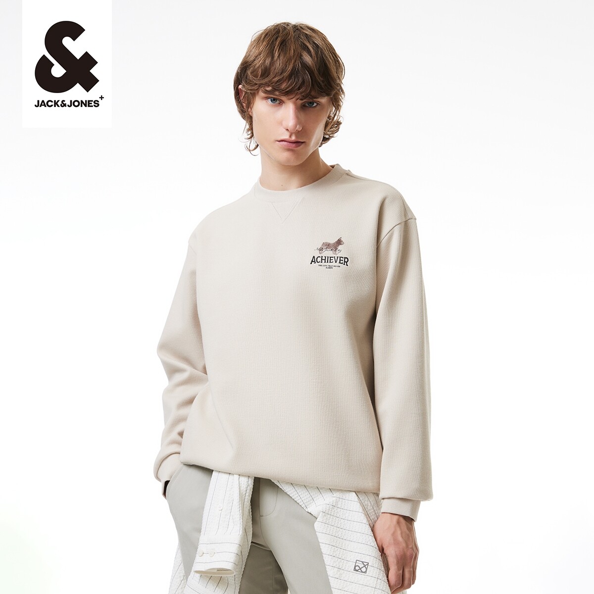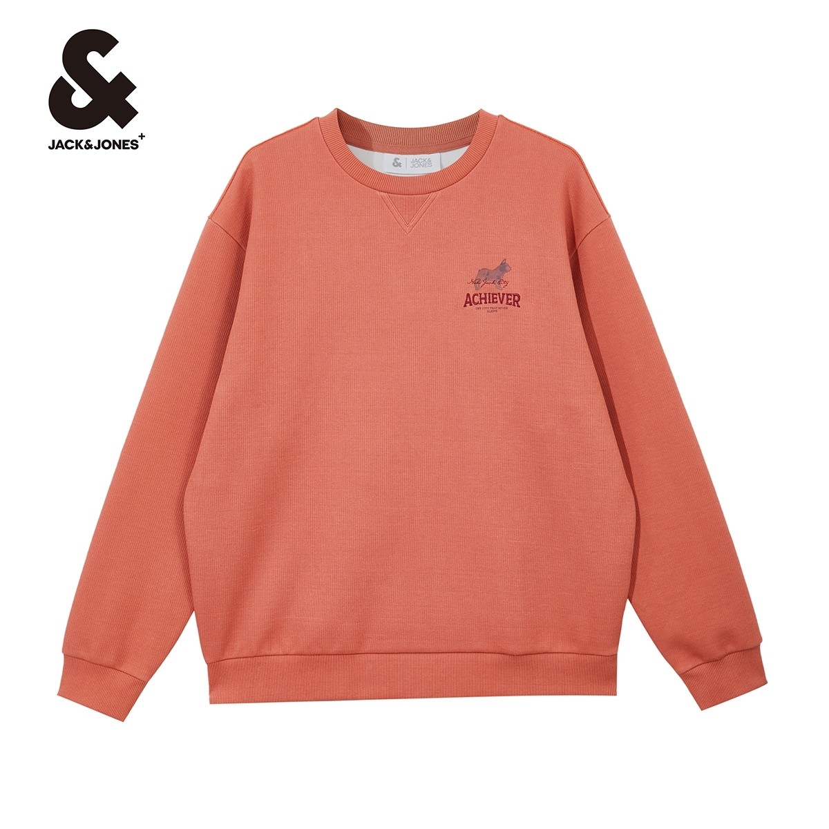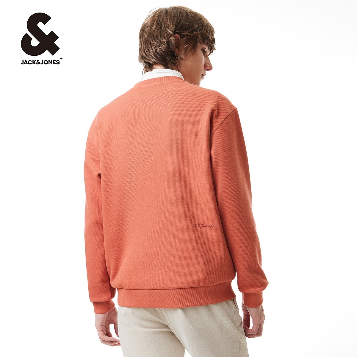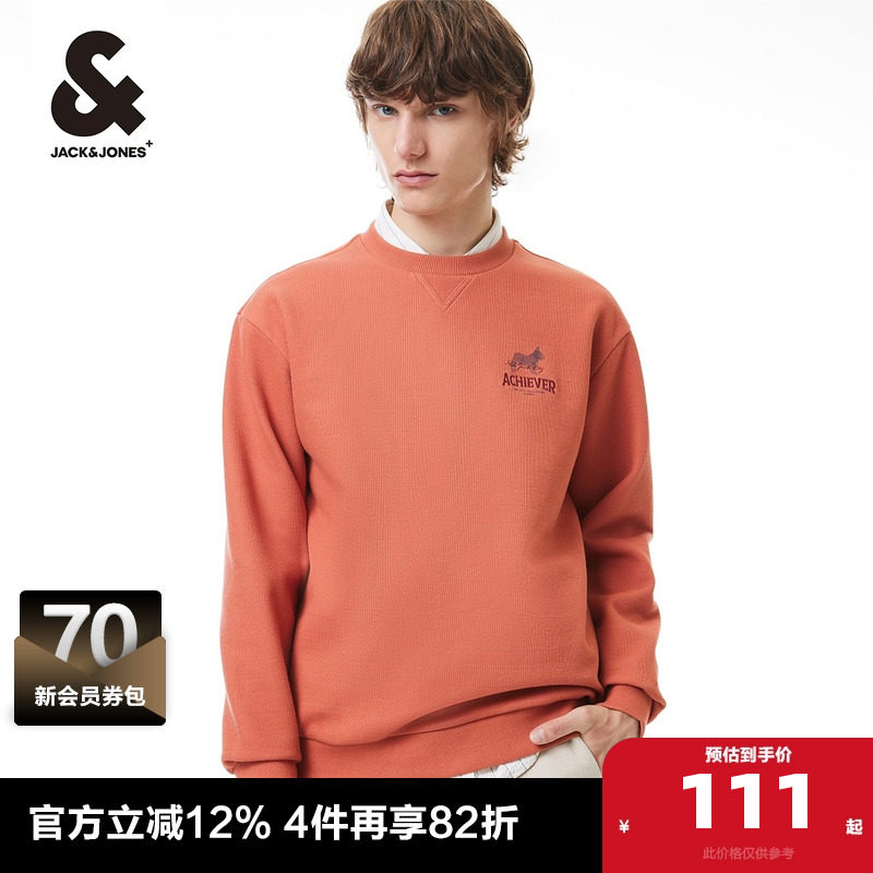 杰克琼斯卫衣春季新款螺纹圆领字母图案刺绣休闲衣服纯色卫衣男装